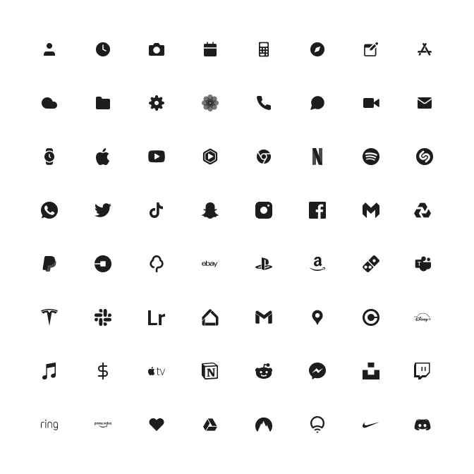 Fully custom minimal icon set for IOS 15. Includes over 60+ icons 24px x 24px. Features icons from all popular apps in three different colourways; Black, White and Matte Black. Completely free updates and if you would like any specific apps added to the collection, please let me know.